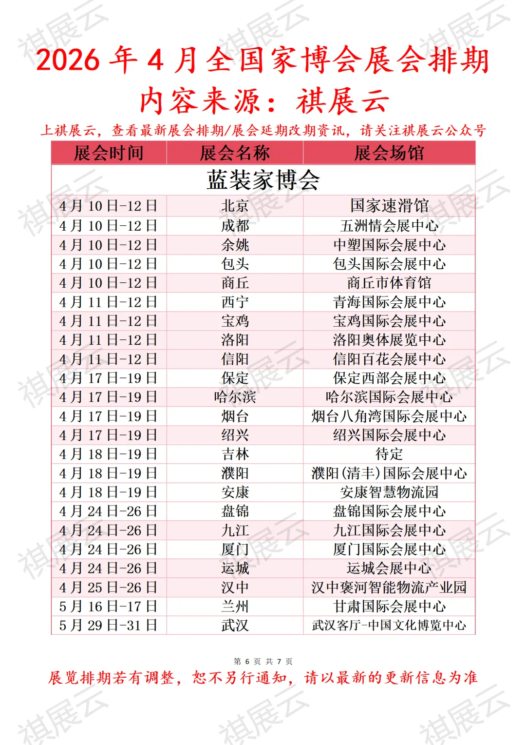 会展资讯丨2026年4月蓝装家博会全国巡展排期