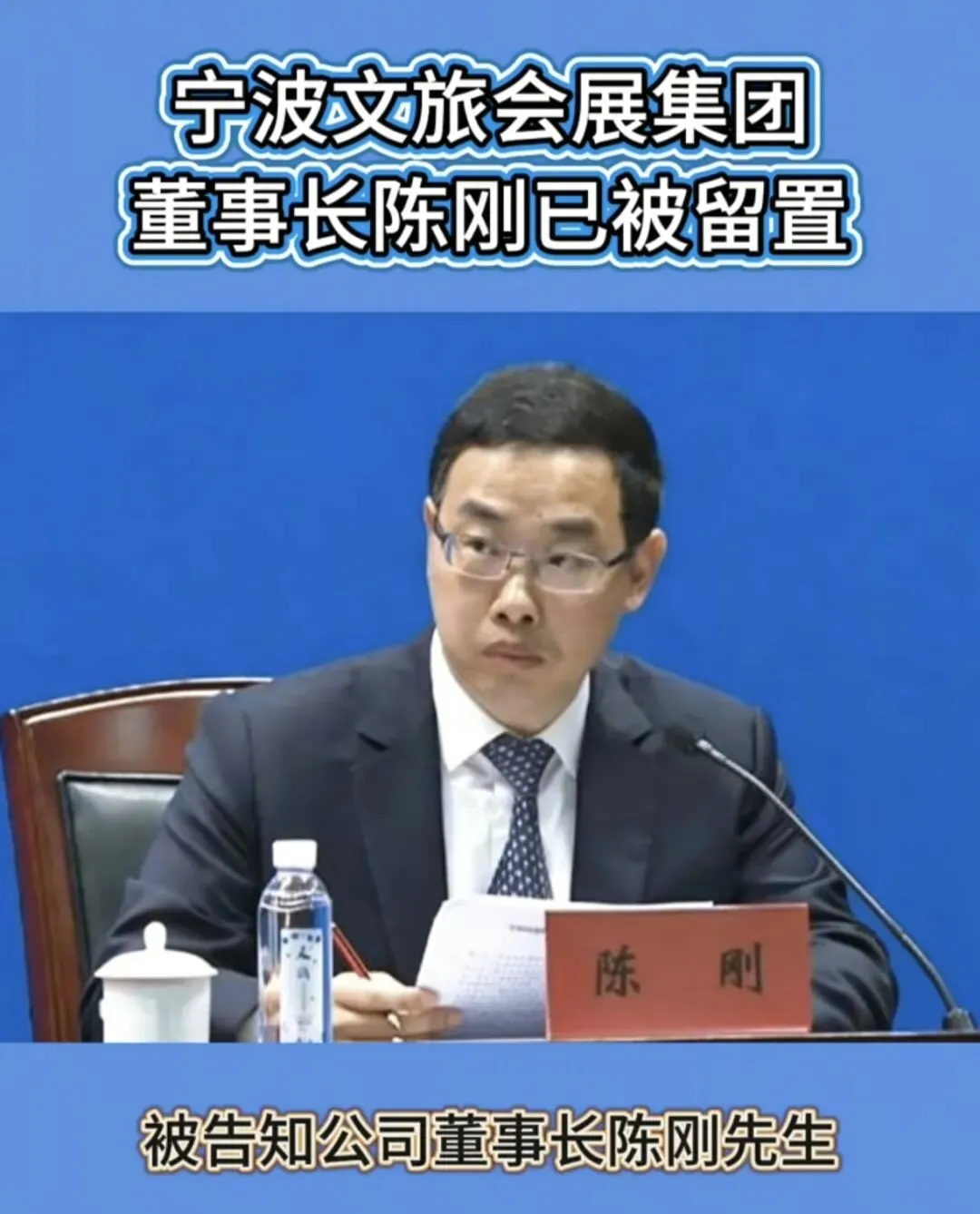 刚从上市公司公告里扒到的消息:宁波文旅会展集团党委书记、董事长陈刚,已经被监察机关依法留置了。