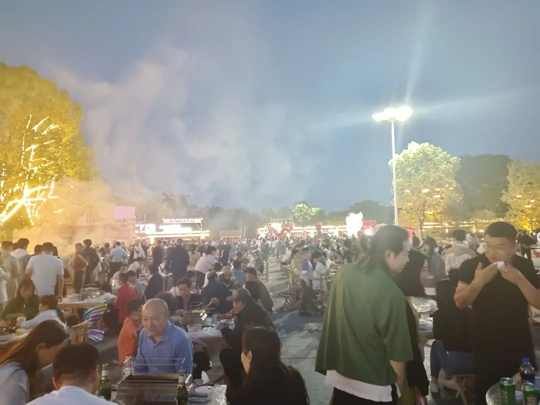 5月1日晚7点半,在遗爱湖公园平湖归雁景区,东坡庙会·五一季·国潮啤酒节的各活动场所已是灯火如昼,喧嚣热闹的人群和浓烈的烟火气息让夜晚的遗爱湖有了不一样的风景,不少餐饮摊位已经满座,吸引了众多游客纷纷前来品尝,大家尽情享受节日的狂欢。