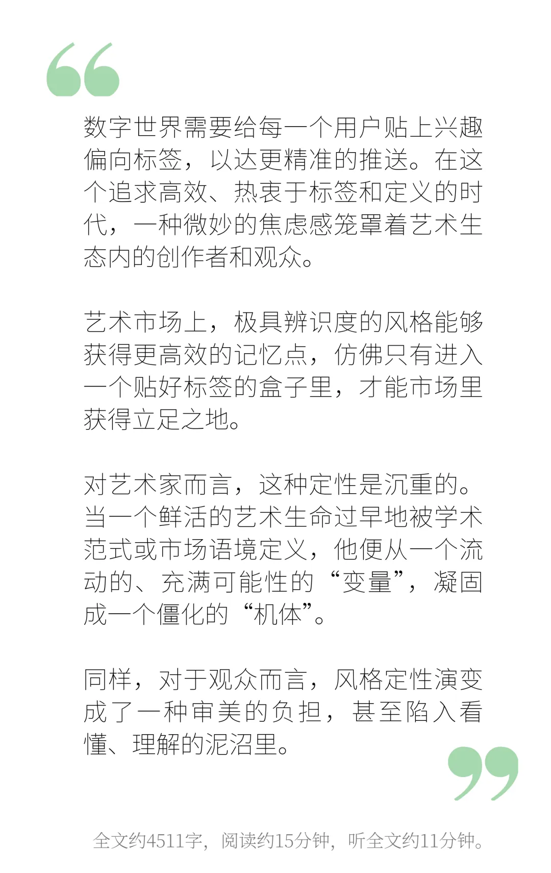 他用的一生的变化证明了,艺术的生命力不在于维持一个完美的风格机体,而在于持续的生成。