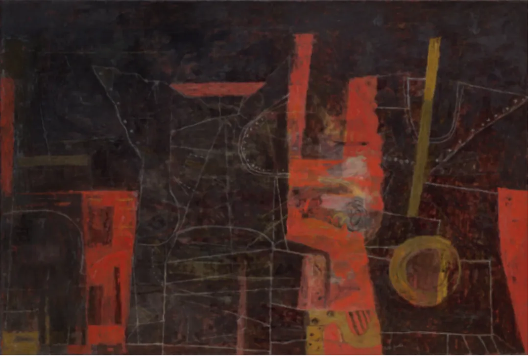 布面油性房屋涂料、蜡笔、铅笔、粉彩|174.5 × 218.5 cm|1954年