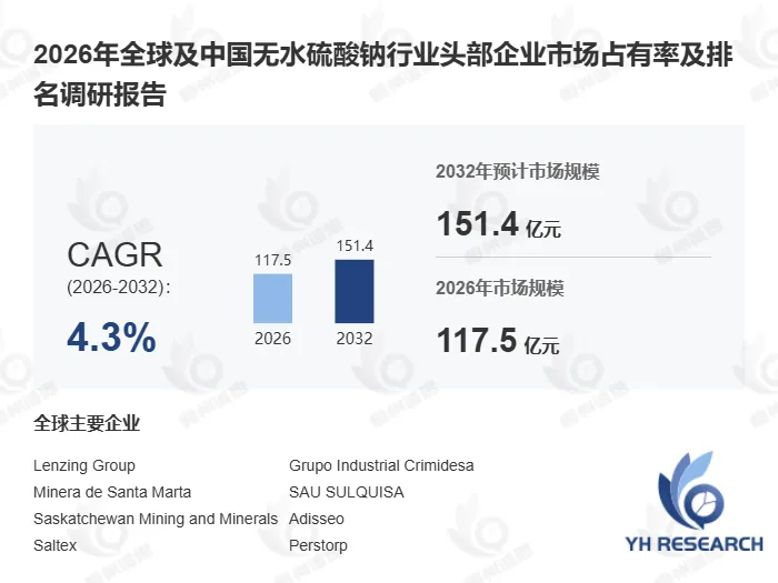 以下内容来自恒州诚思YHResearch出版的《2026年全球及中国无水硫酸钠行业头部企业市场占有率及排名调研报告》,同时提供英文,日文,韩文等不同语种版本报告。