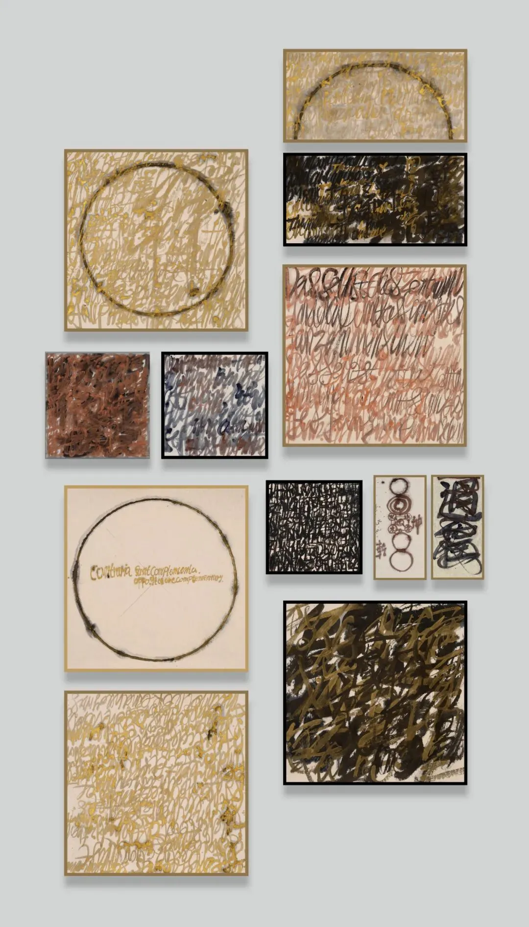 此次“厚土流光:王绍强的行察与通变”展览以五个单元逐步展开,呈现艺术家近年来持续推进的观念书写实践及其跨文化诠释路径。单元一以《孜孜千字》与围绕《太极图说》展开的作品为起点,呈现其书写实践中的重要转向,并将跨文化思想线索引入同一视觉场域。单元二进一步围绕语言、世界与理解之间的关系展开追问,通过多语种文本的并置与转译,打开关于诠释如何可能的讨论。单元三延伸至对生态、自然与生成关系的深入思考,将不同文明传统中的思想资源纳入当代书写的研究视野之中。单元四则转向现当代艺术观念与东方思想资源之间的深层回响,围绕语言、行动、沉默、日常与存在等问题展开新的观照。单元五回到王绍强山水创作的原初路径,并将山水作为一种视觉性的诠释学实践继续推进。在这一部分中,艺术家围绕“自然”的理解方式展开进一步思考,通过笔墨、结构与空间关系的组织,重新激活山水在当代语境中的思想张力。与此同时,此单元亦将其艺术语言中的元素——如点、线——引入对几何问题的思考,尤其在与拓扑学及欧几里得几何的关联中展开,使其书写、造境与空间意识得以在同一脉络下互发,共同指向对自然、秩序及其生成关系的持续叩问。