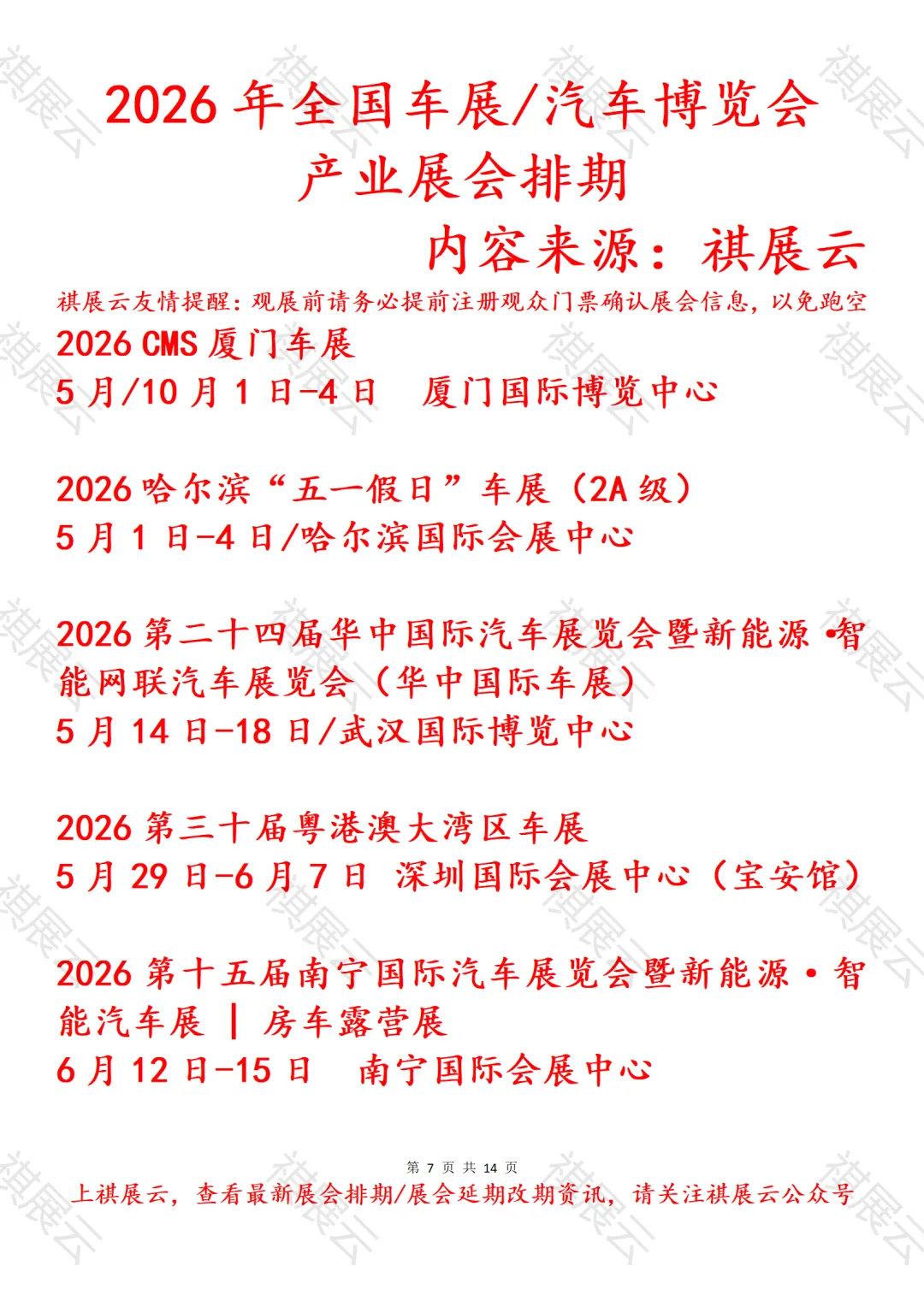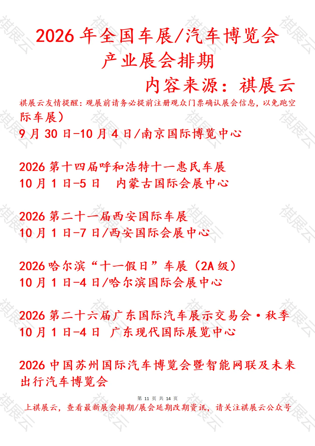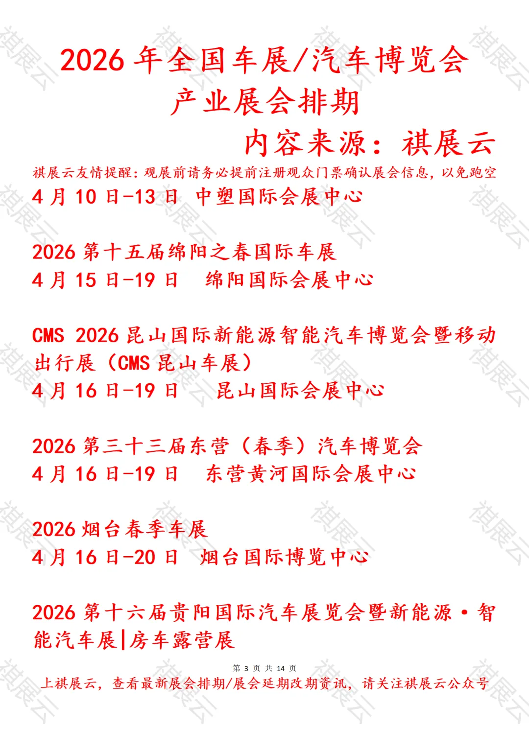 会展资讯丨全国汽车博览会/车展展会2026年上半年展会时间表