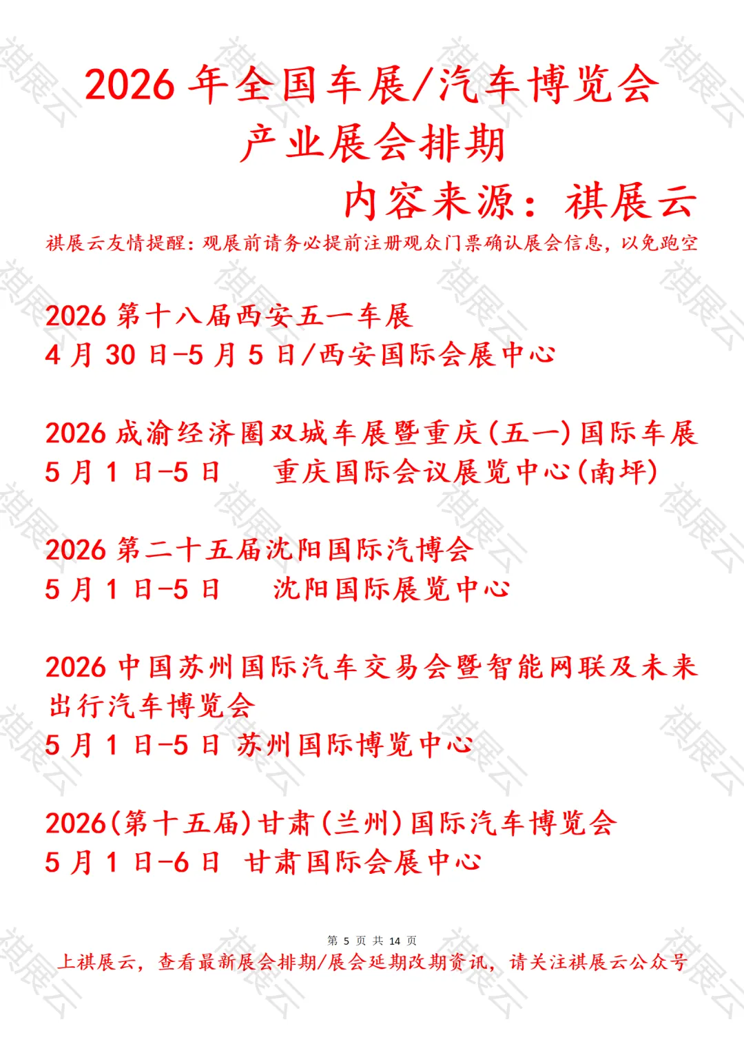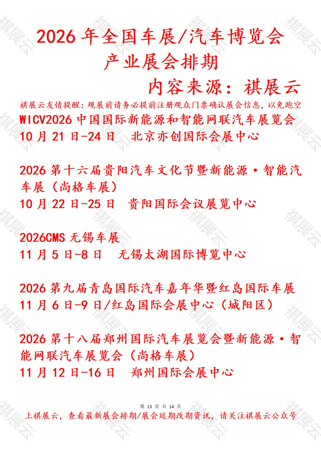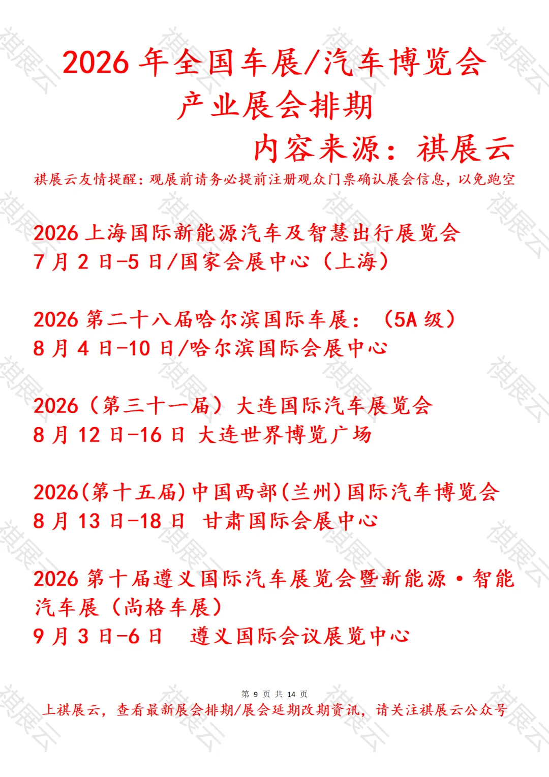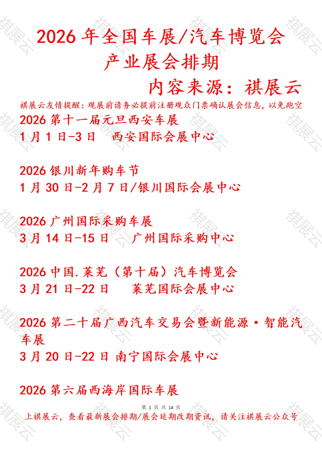 会展资讯丨全国汽车博览会/车展展会2026年上半年展会时间表