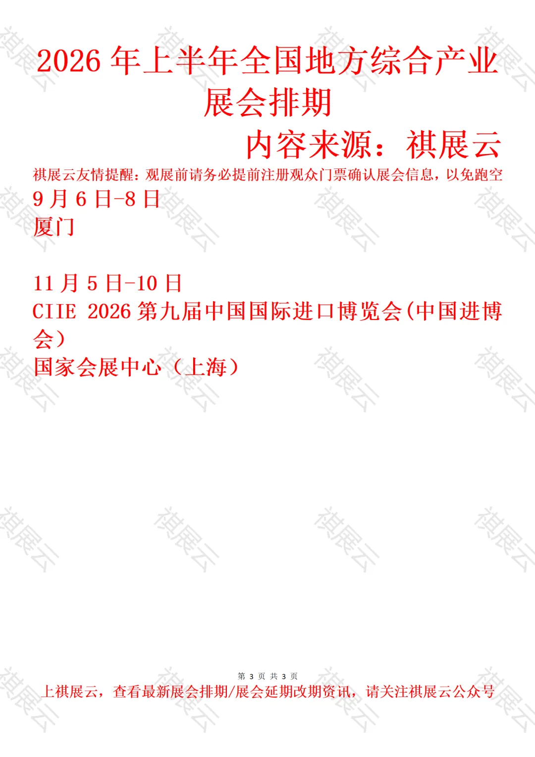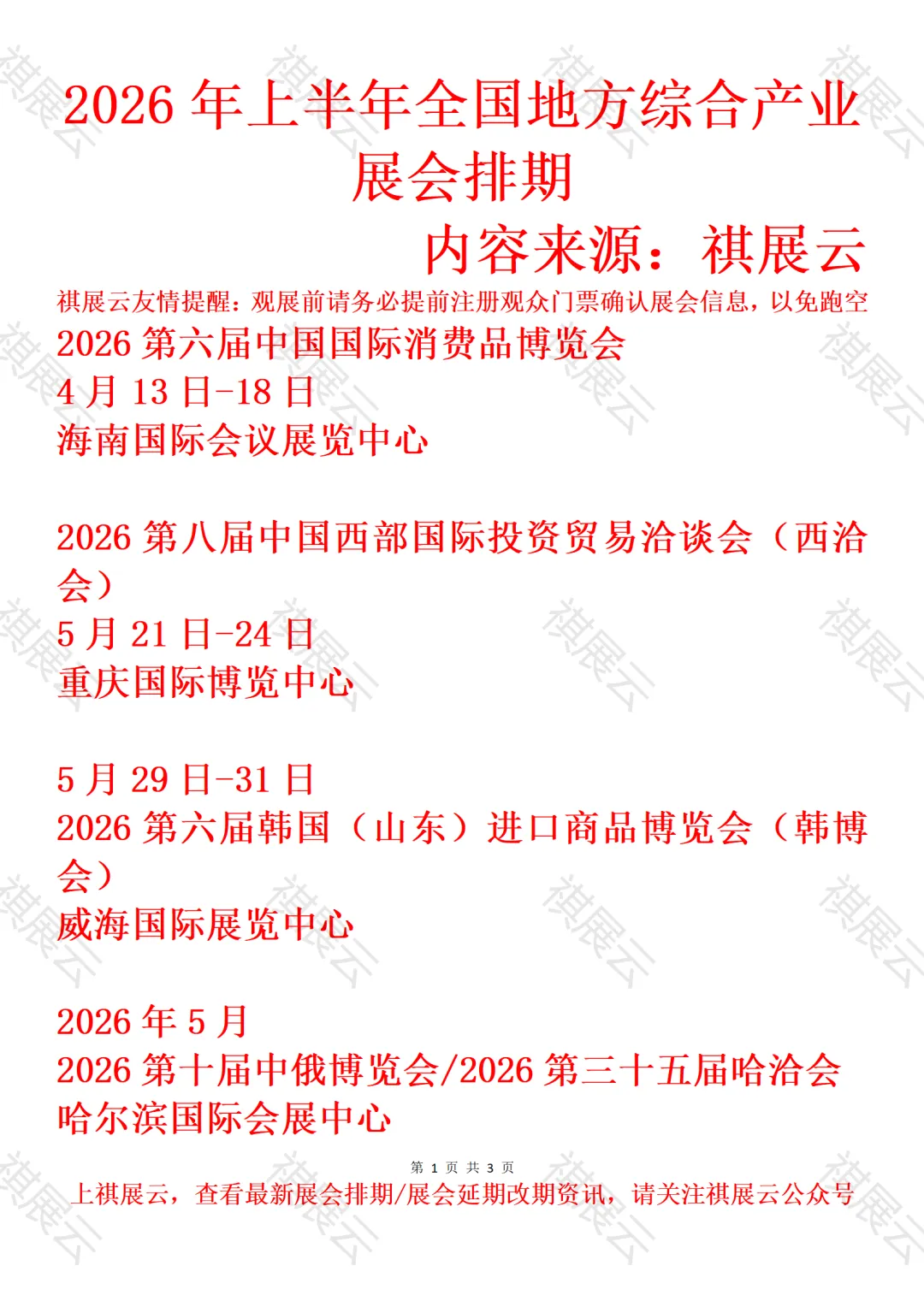 会展资讯丨全国区域型国家级展会2026年上半年展会时间表