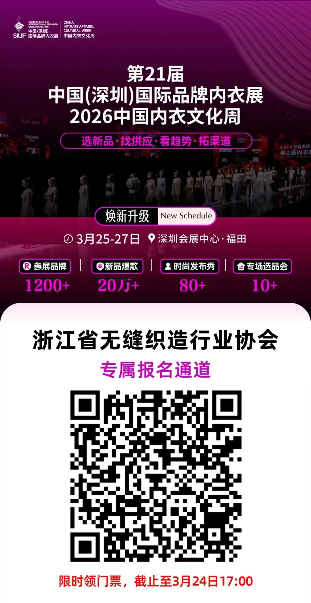 一场聚焦内衣产业的行业盛会即将启幕!SIUF 第 21 届中国(深圳)国际品牌内衣展暨 2026 中国内衣文化周,定于3 月 25 日至 27 日在深圳会展中心(福田)举办。作为国内内衣领域极具影响力的专业展会,本次活动不仅是产业成果的集中展示平台,更是无缝织造产业上下游融通对接、共探发展的重要契机,将全方位串联趋势洞察、创意交流与商业合作,助力企业把握行业脉搏。