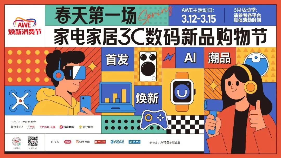 AWE2026积极响应国家扩大内需战略和消费品以旧换新政策,由AWE主办方联合京东、天猫、抖音商城、苏宁易购等平台共同打造的“AWE焕新购物节”于展会同期举办。通过平台资源补贴与品牌内容传播共振,AWE焕新购物节有效承接了观展热度,点燃了消费者的换新热情,充分体现出以优质供给激发消费需求、以场景体验带动消费升级的显著成效,也使AWE“展会+消费”双向联动的溢出效应得到释放。