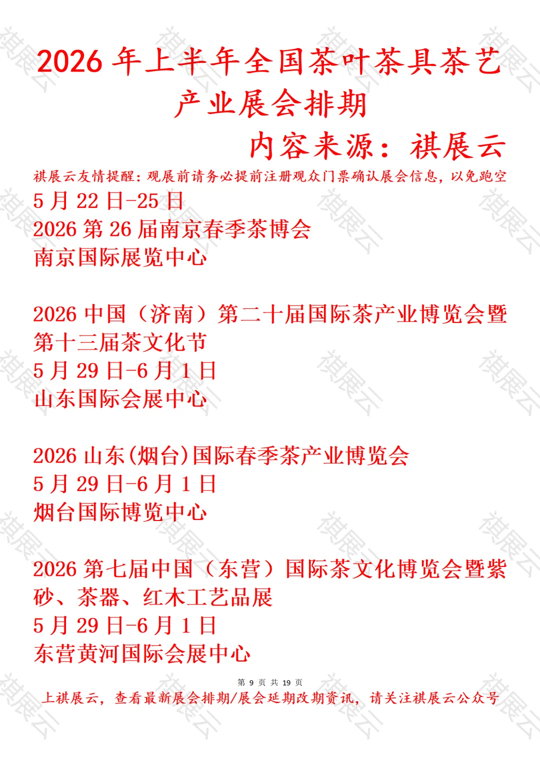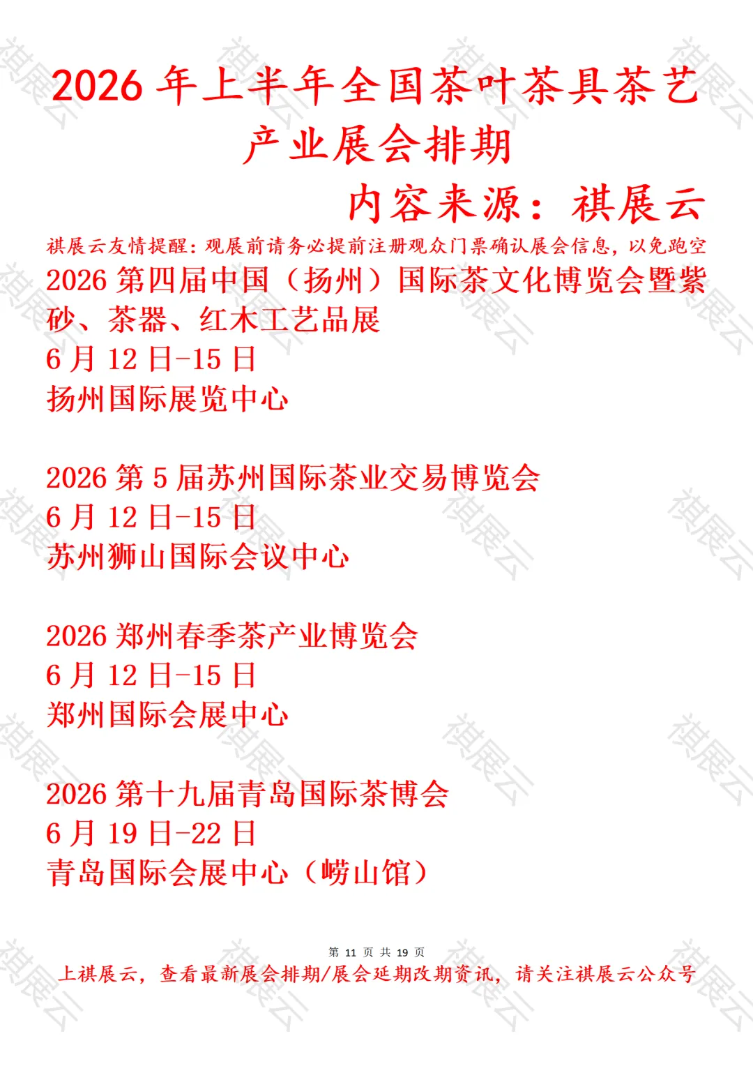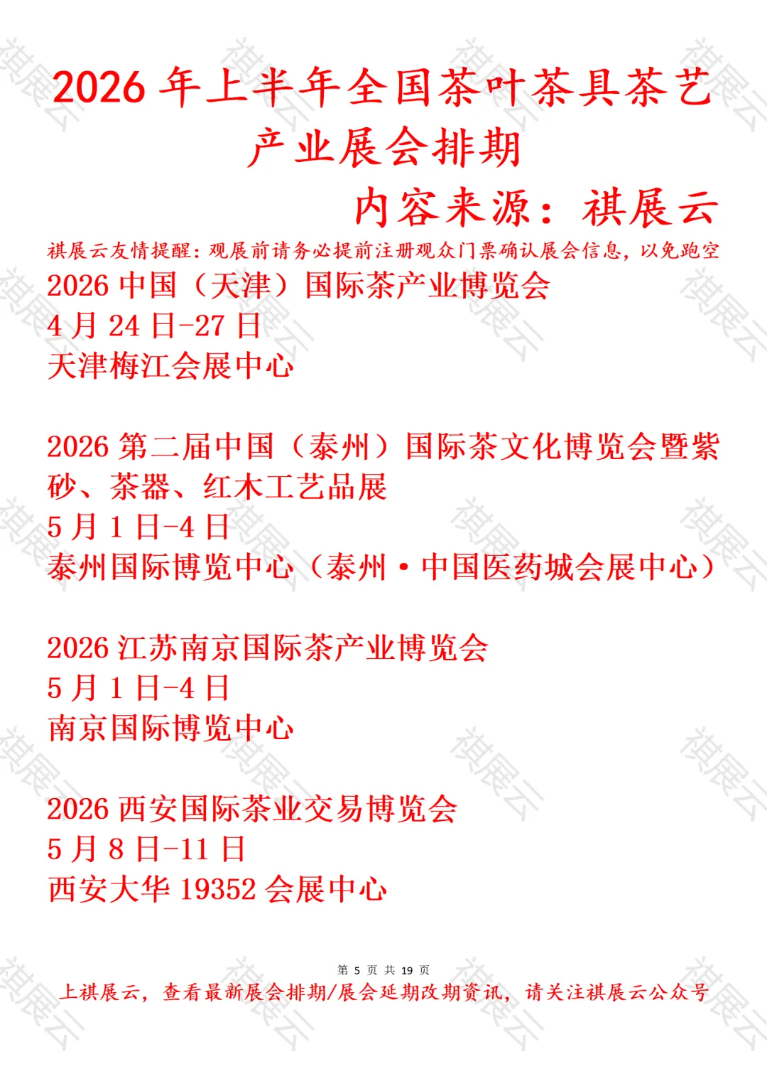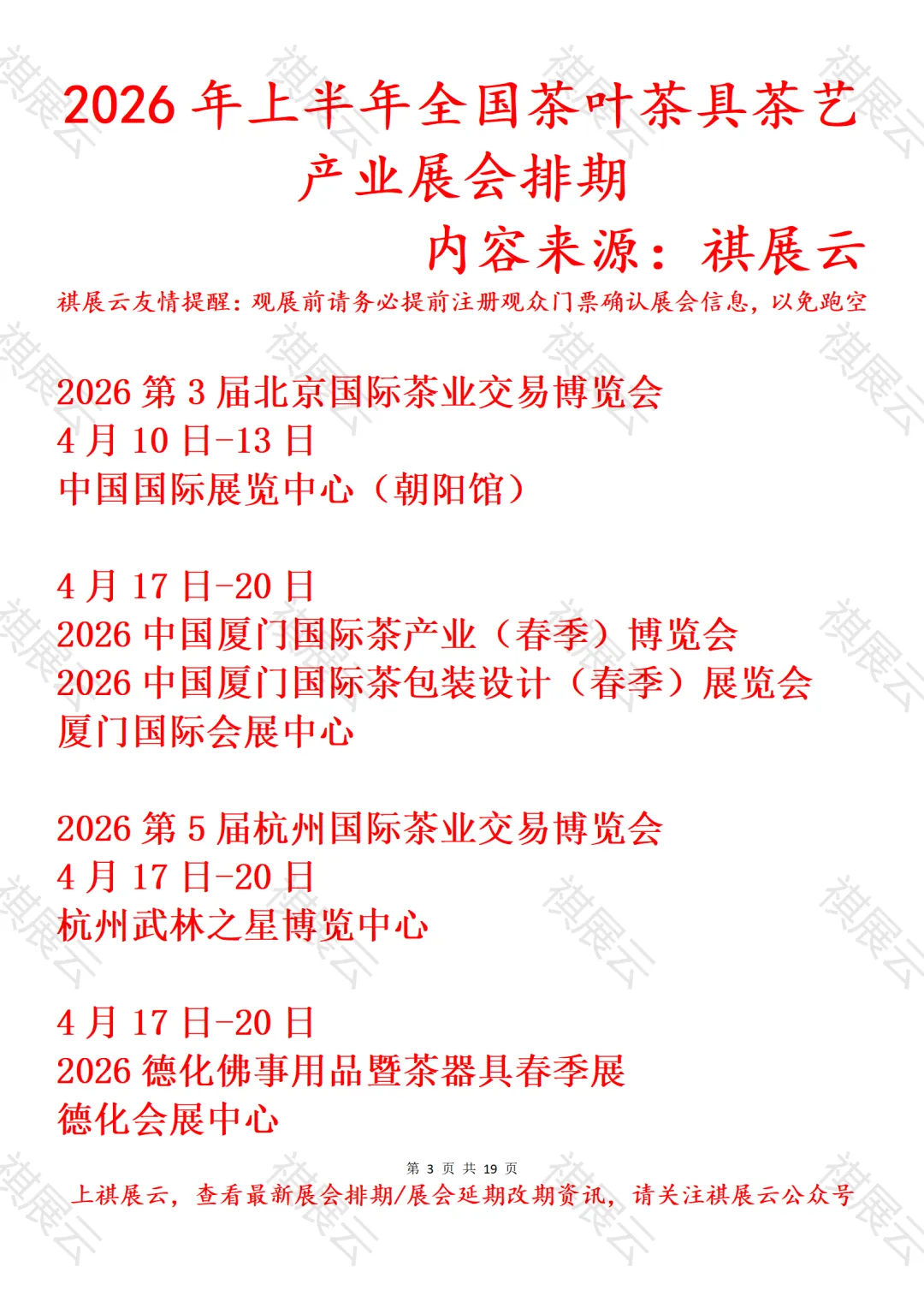会展资讯丨全国茶叶茶艺茶具展会2026年上半年展会时间表