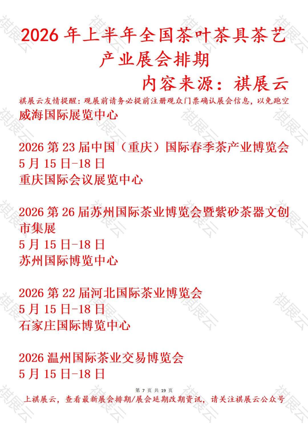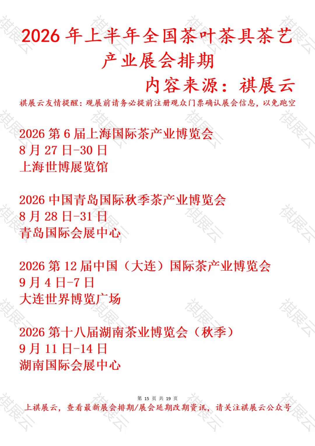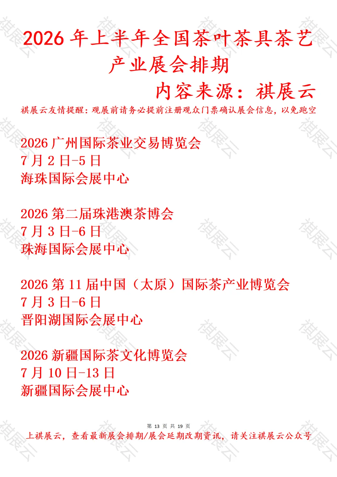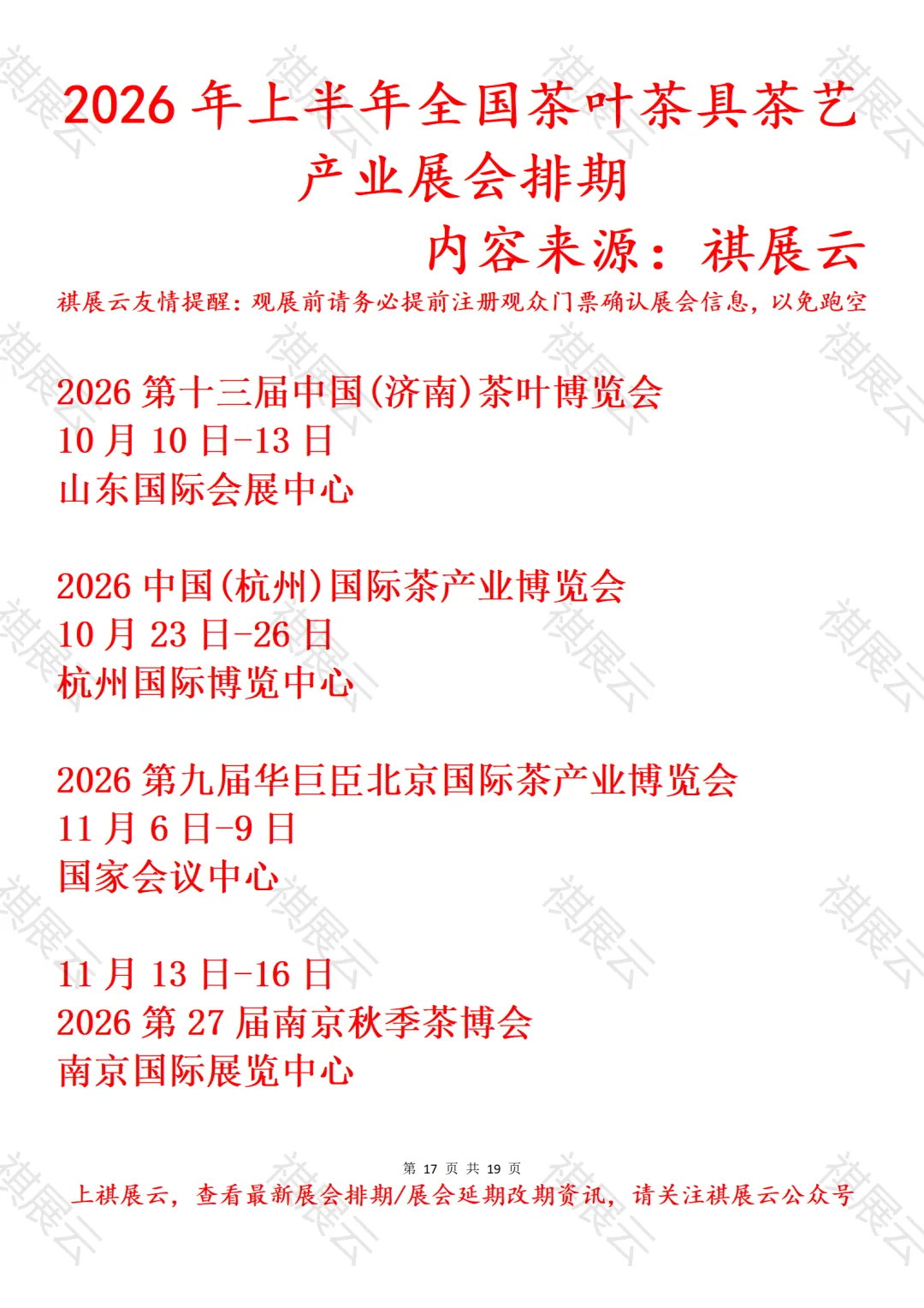 会展资讯丨全国茶叶茶艺茶具展会2026年上半年展会时间表