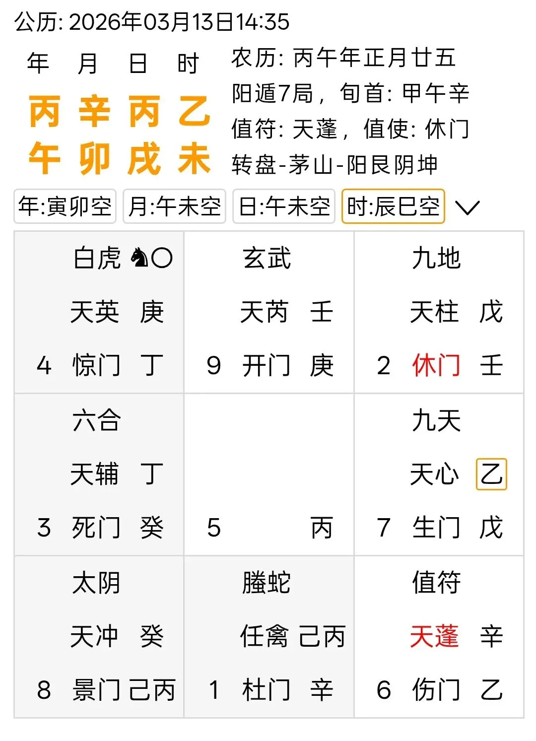 在我细细的盘问之下,先生说首先是用一种股票价格、形态、成交量等等多种技术指标组合构成。当然,我也看得出先生还是有保留的,并没有完全托盘而出,它的核心交易方法。对此,我只能按照先生的要求起出奇门遁甲局来看看他的这种组合究竟怎么样?先生爆出他是“乙”年出生的人。