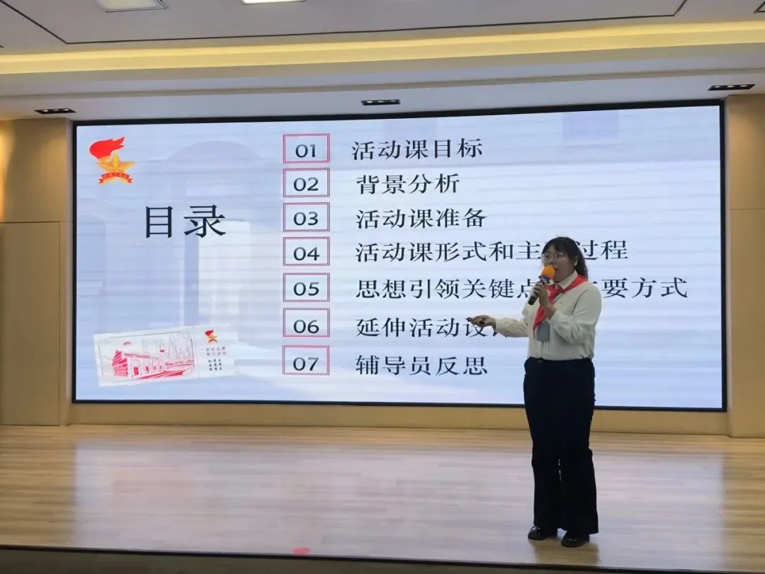 本次活动课设计环节紧扣《少先队活动课程指导纲要(2021 年版)》要求,参赛辅导员结合少先队员的年龄特点、认知水平和少先队工作实际,完成包含主题、目标、对象、准备、过程、延伸等核心模块的活动课设计,并进行现场脱稿展示。比赛中,各位辅导员的设计作品亮点纷呈,紧扣少先队实践育人特色,将政治启蒙、组织认同、道德养成、全面发展等目标巧妙融入,活动流程清晰、准备工作扎实、延伸设计贴合实际、反思总结针对性强,充分体现了少先队活动课的实践性、可操作性和教育性。