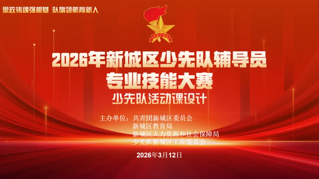 3月11日,2026年新城区少先队辅导员专业技能大赛第三环节——少先队活动课设计精彩上演。经过前两轮层层筛选,32名晋级辅导员在本环节展开激烈比拼,以匠心设计彰显专业能力,以多元构思推动少先队实践育人工作走深走实。