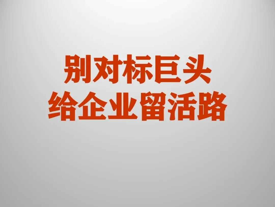 很多老板总觉得,巨头这么做,肯定有道理,我跟着做,总不会错。但你忘了,巨头的道理,是基于它的体量和位置的道理,不是你的道理,巨头的玩法,是用来绞杀对手的玩法,不是用来帮你成长的玩法。你主动去学,就是主动走进巨头给你设好的包围圈,亲手把自己的生路掐断。
