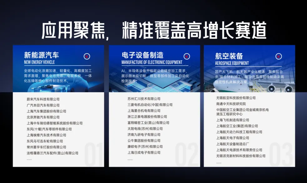 长三角地区作为中国经济发展的重要引擎,机床、零部件、应用领域形成产业闭环。上海作为华东地区的几何中心,各产业集群化发展。上海国际机床展将聚焦新能源汽车、电子设备制造、航空装备等上海重点发展行业,以应用入局,积极打造应用新场景。