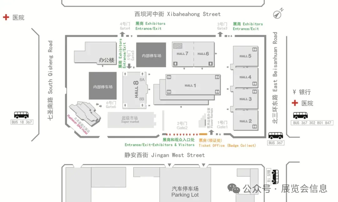 .导航设置:输入“中国国际展览中心(朝阳馆)1号门”,或直接搜“北三环东路6号”。