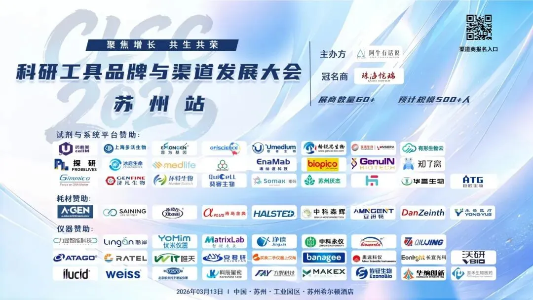 3月13日,苏州工业园区将同时迎来两场行业会议:一场聚焦生物工艺,一场聚焦生命科学科研工具渠道招商——没错,后者就是我们主办的CLSC 2026·苏州。
