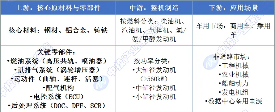 内燃机产业链条技术密集,上游核心零部件的性能直接决定了中游整机的动力性、经济性与可靠性,而下游应用场景的深刻变革正持续牵引着产业链的技术升级方向。