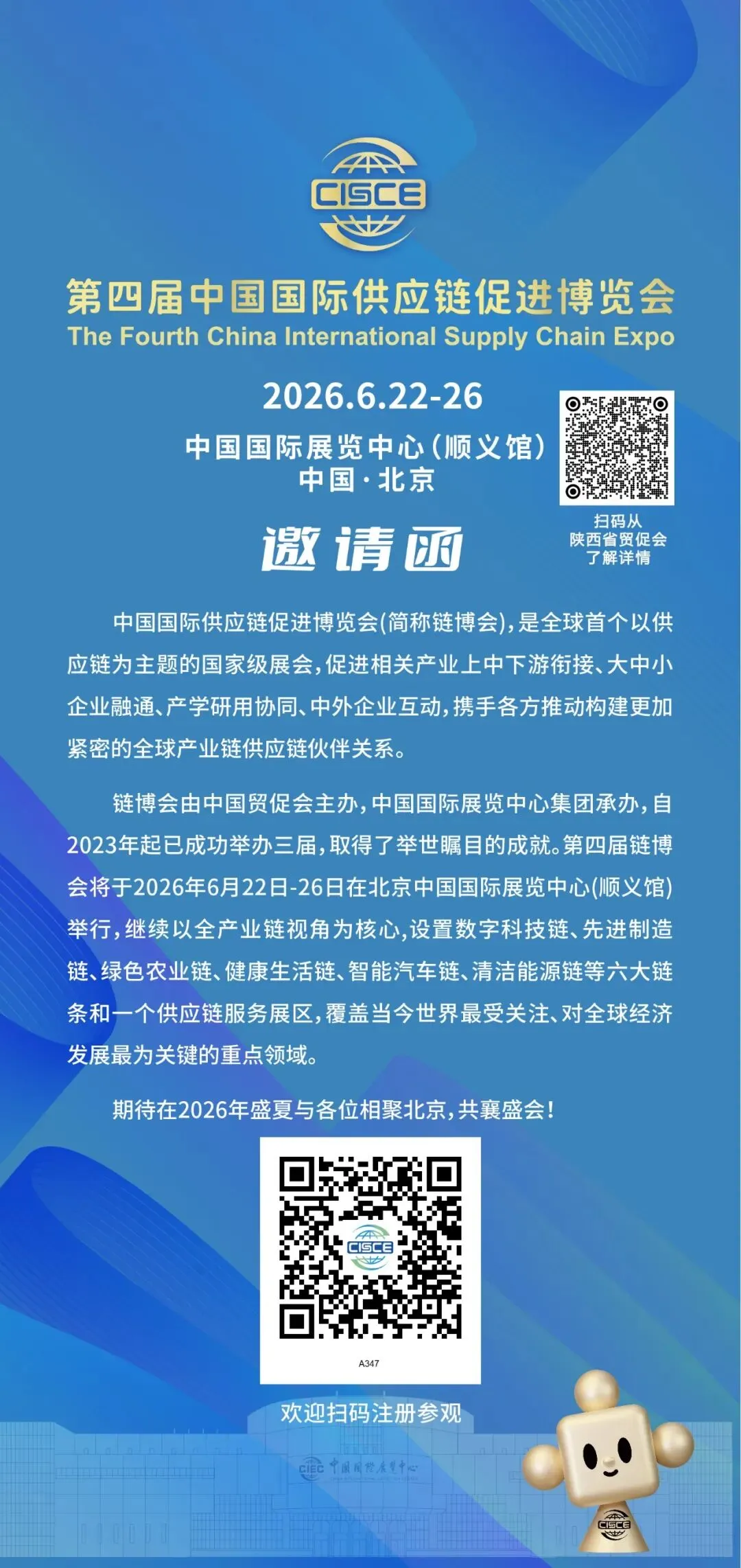 链博会由中国国际贸易促进委员会主办,中国国际展览中心集团承办。自2023年起已成功举办三届,成效显著。