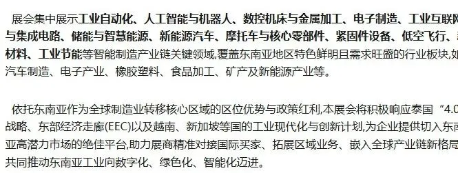 ➤2026东南亚(泰国)智能制造展览会将于2026年7月22日至24日在泰国IMPACT会展中心隆重举办。全球供应链重构期,东南亚已成制造业黄金蓝海!本届展会旨在助力企业把握东南亚产业升级与转型机遇,共享区域增长红利。