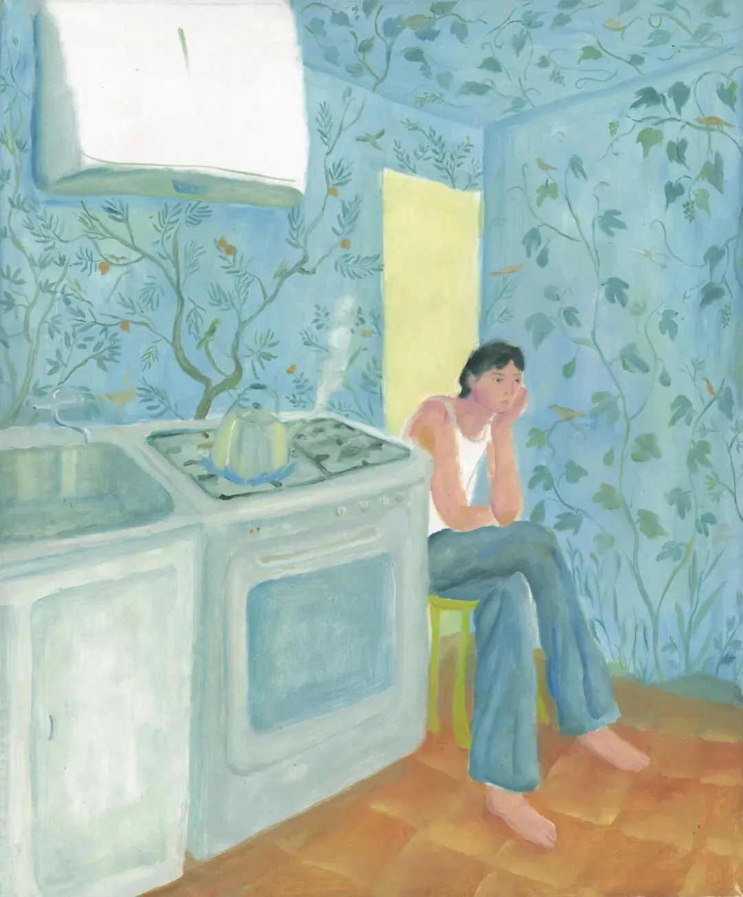这种对空间的感知,往往源于某种本能的自我保护。正如卤猫曾在他童年那间无窗的卧室墙上画出一扇面朝大海的窗,他的作品始终像是一扇扇向内开启的窗户,让那些在浴室或厨房中流露的慵懒与孤寂,在烂漫的色彩中获得了一种疏离而纯粹的自由。