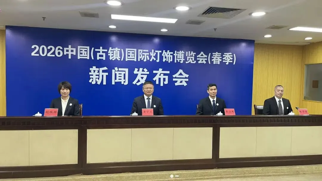 3月12日,2026中国(古镇)国际灯饰博览会(春季)(简称第34届古镇灯博会)新闻发布会在中山市古镇镇举行。中山市古镇镇党委副书记、镇长黄贤龙,中山市古镇镇党委委员梁泳彬,中山市古镇镇副镇长胡蝶辉,中山古镇灯都博览有限公司总经理林华标出席发布会。发布会重点介绍本届古镇灯博会筹备情况,并就展会总体安排、筹备情况和特色亮点等答记者问。