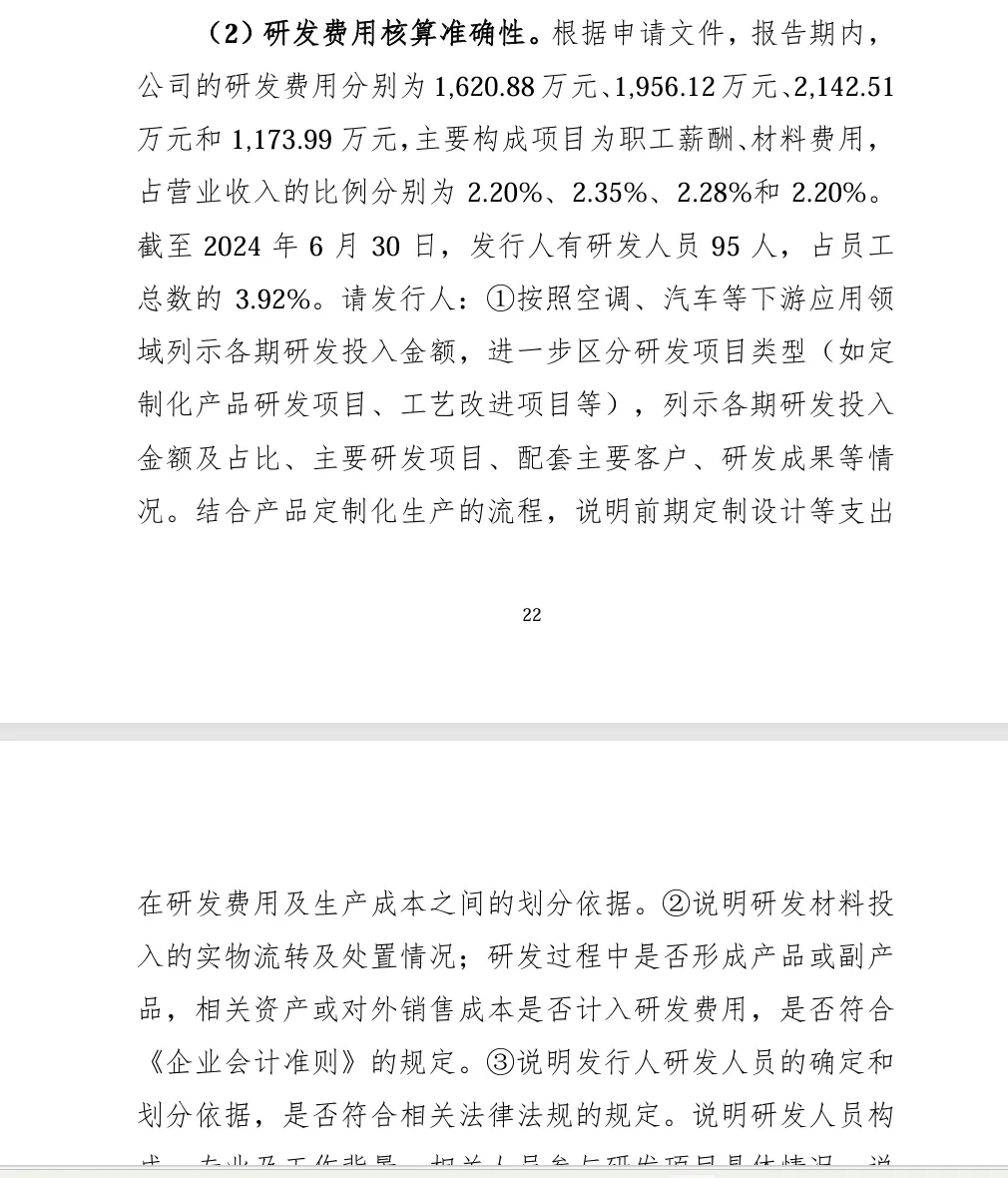 1. 按空调/汽车下游、定制开发/工艺改进类型拆分研发投入,披露成果与客户;