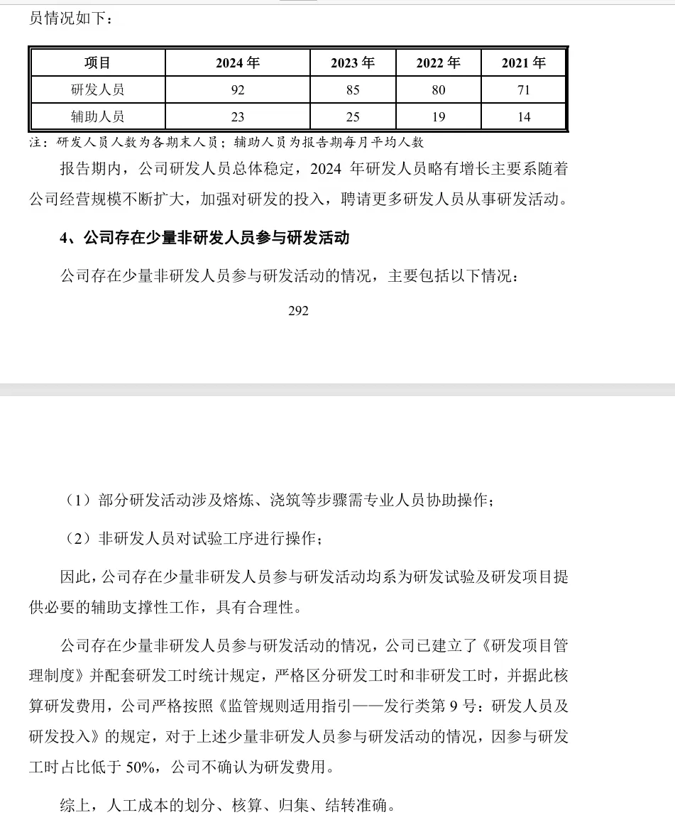 3. 研发人员划分依据、兼职情况、非研发人员参与研发的合理性;