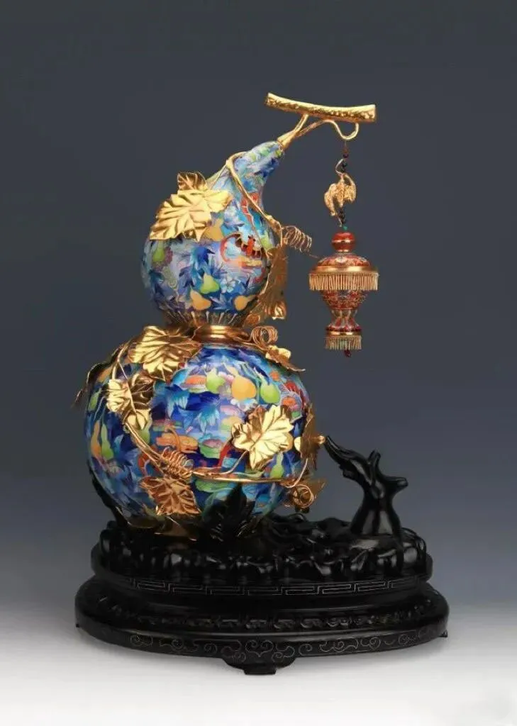 中艺堂艺术中心深度合作大师张同禄大师传世经典作品,集大师六十年从艺心得与深厚功力倾心创作。巧妙融入紫禁城宫灯造型,更显宫廷景泰蓝风范。
