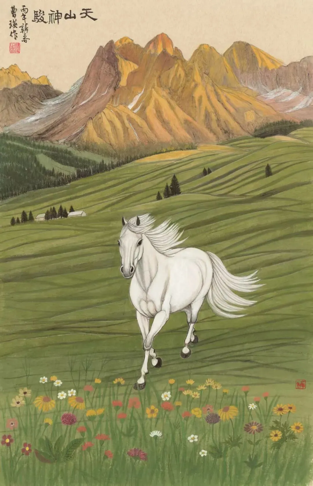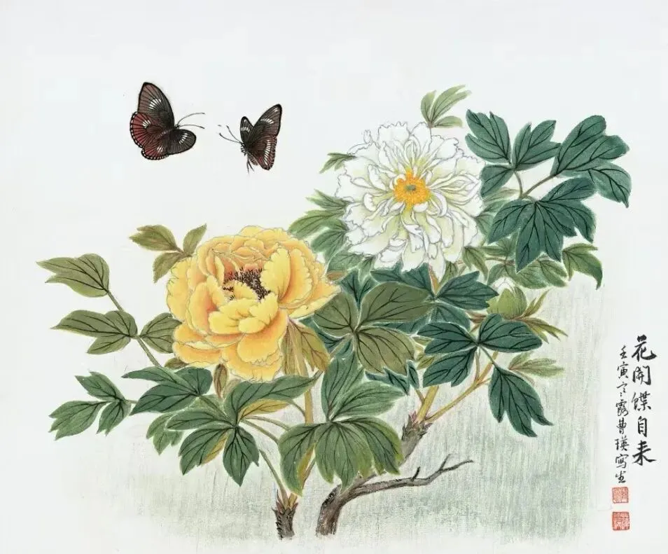 “撷华掇英”大约自“掇菁撷华”一词化出,原词始见于唐代诗人刘禹锡《河东先生集序》,其意为选取精华。华即花,英亦是花,是青春的标志。对于行将步入“古稀”之年的他俩而言,这一画题的选择,象征着新的青春的开端。我想,这是心灵的春境罢!