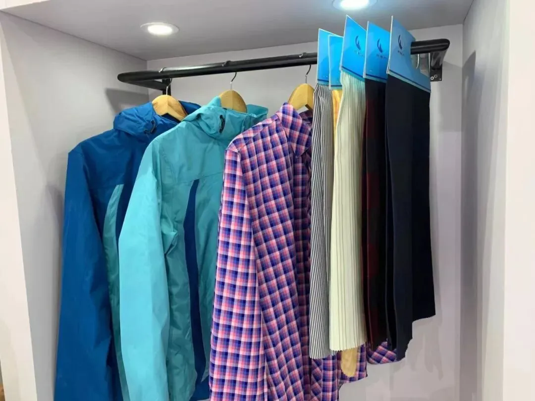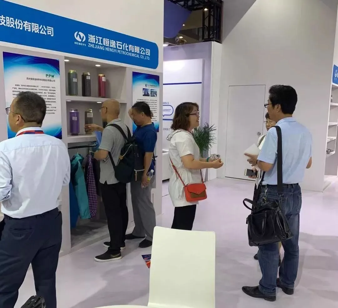 浙江恒逸石化有限公司是一家专业从事石油化工与化纤原料生产的现代大型民营企业。公司在差别化功能性产品与复合类产品上做了很多工作。本次展出了由公司自主开发的无锑聚酯产品逸泰康®制成的冲锋衣,展位负责人表示,这种冲锋衣在光线照射下温度可提高10℃,且这种绿色产品不含重金属,对人体、环境都十分友好。此外,公司还特别展出了由常压阳离子、阳离子、低温易染、普通涤纶交织实现的一浴多色逸黛系列衬衣,这也是本次公司展出的一大亮点。