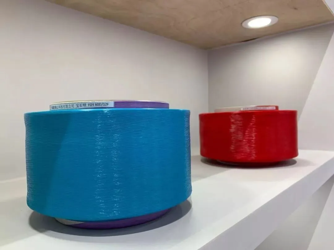 福建锦江科技有限公司拥有自动化、智能化融合的纺丝工厂,专业生产民用高性能锦纶切片和锦纶丝系列产品,并做到了民用锦纶产能全国第一。本次公司主要展出的是FDY锦纶丝,目前在纺丝过程中可以实现智能自动落筒、在线检测及暂存、自动包装、自动出库、丝饼端面全程不接触人手,大大保障了丝饼的品质。