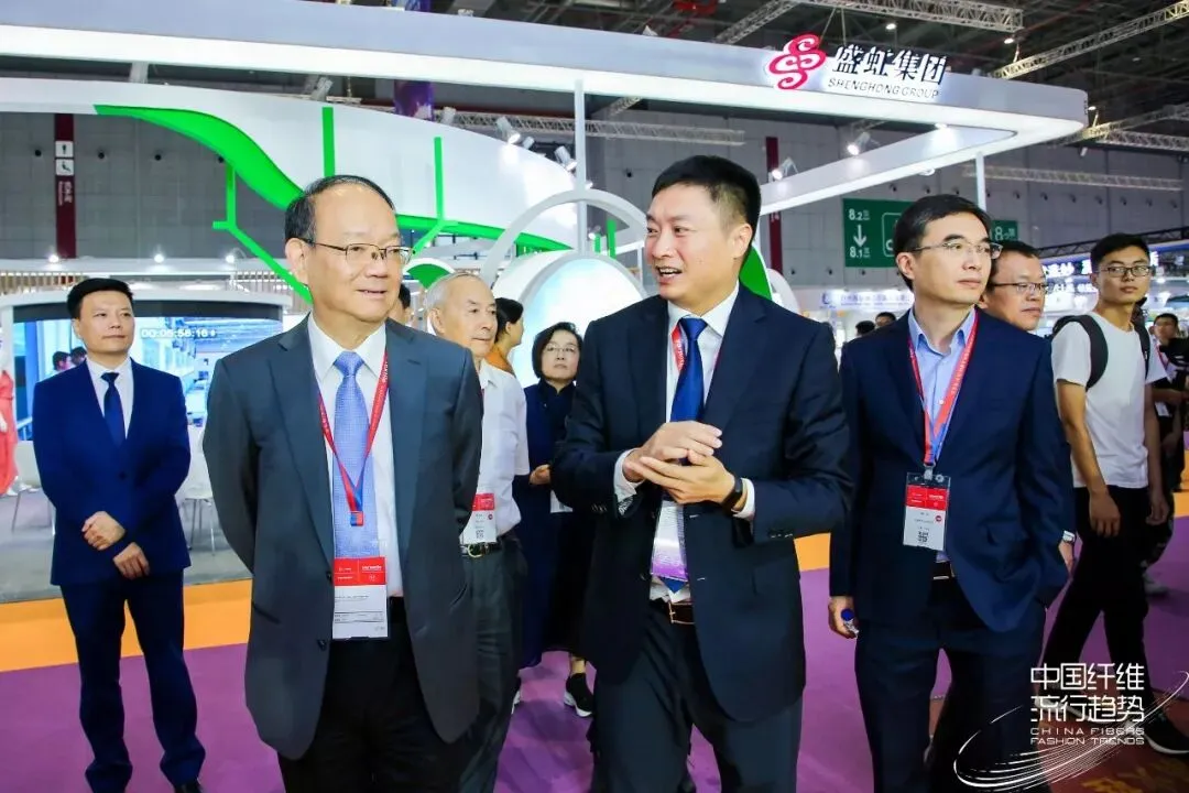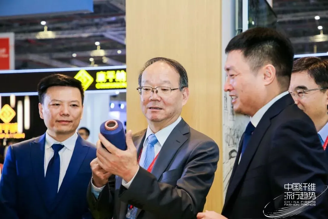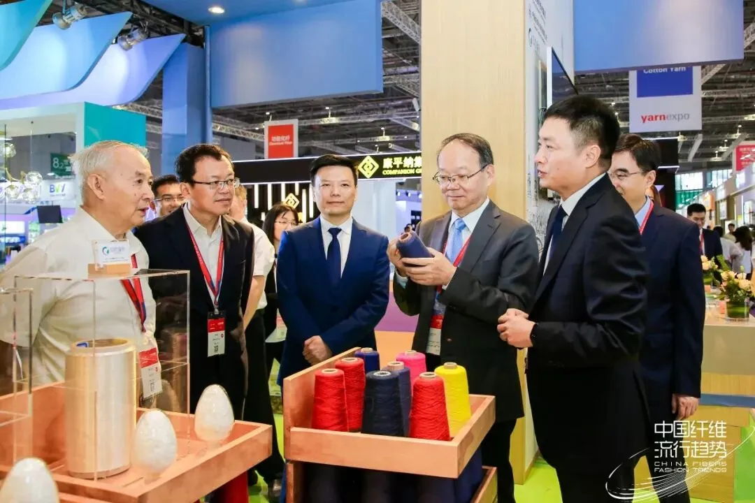 当天上午,中国纺织工业联合会党委书记兼秘书长高勇,中纺联副会长、中国产业用纺织品行业协会会长李陵申,中国工程院院士蒋士成,中国化学纤维工业协会副会长贺燕丽等领导莅临中纺院展位。中纺院党委书记、董事长庄小雄,纪委书记邵林,总经理助理刘剑,发展与改革部主任程学忠等陪同参观。