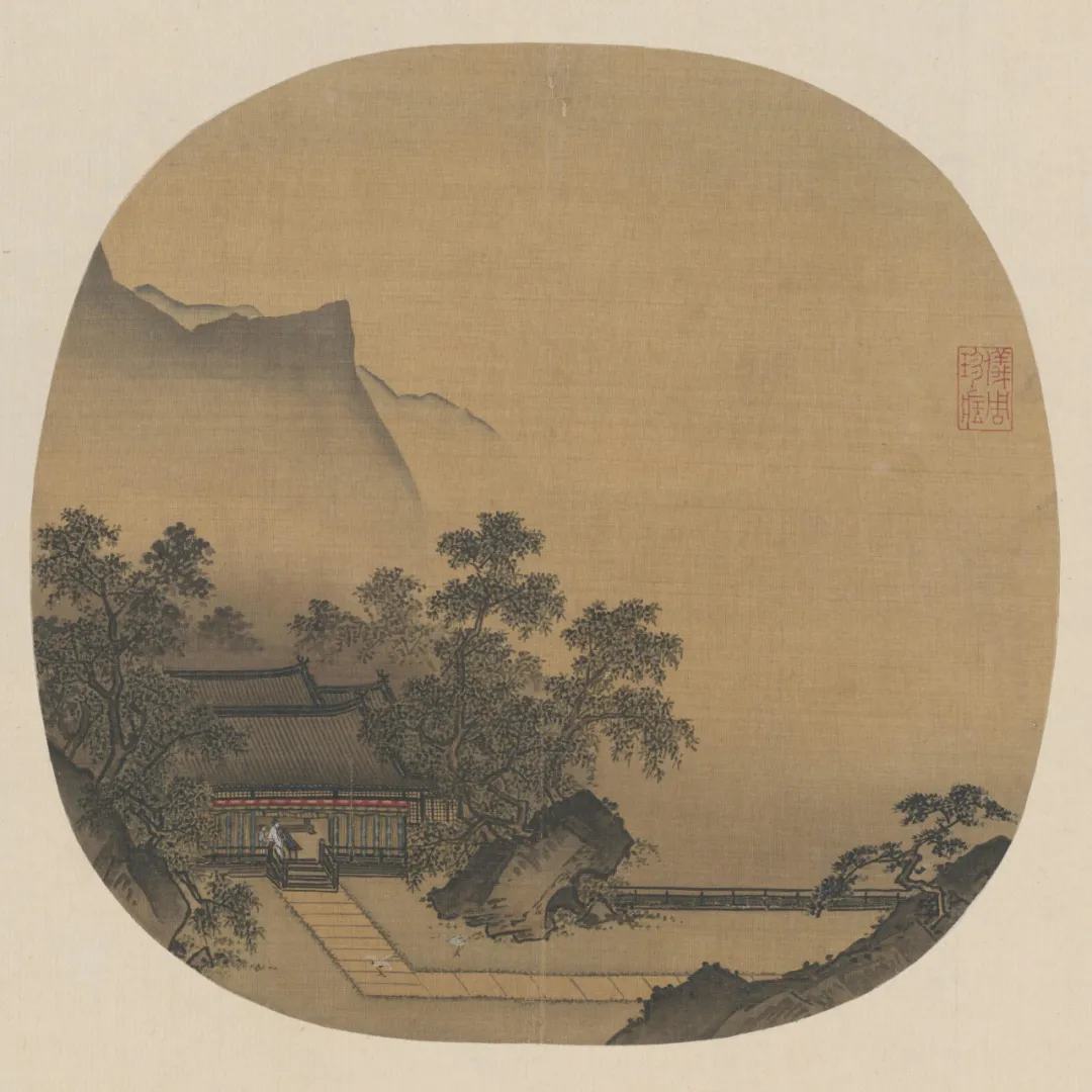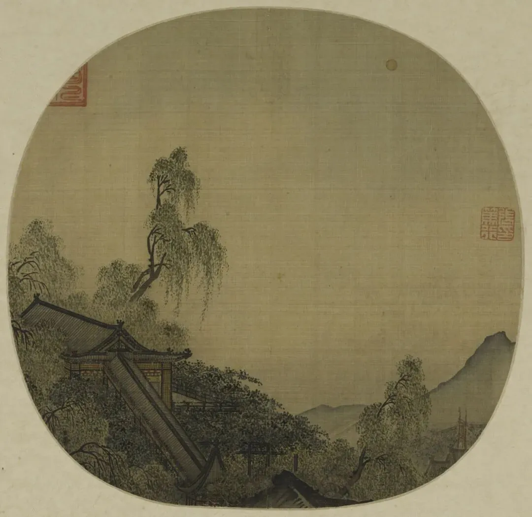 南宋 马麟 楼台夜月图扇
