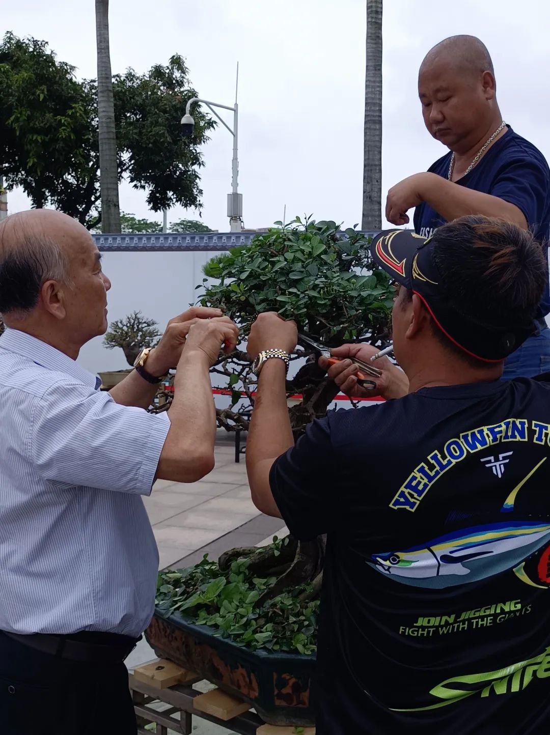 会员动手修剪盆景