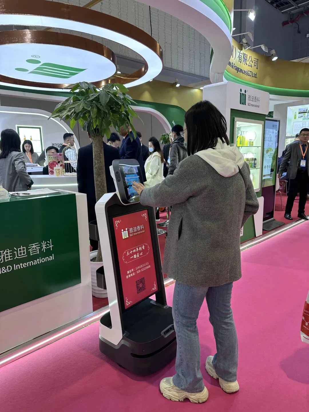 在此次FIC展会上,雅迪带来了AI机器人“小雅”,担任展会工作人员这一创新角色。这一举动迅速成为了展会现场的一大亮点,小雅以其智能互动、高效服务的能力,为展会增添了一抹未来科技的色彩,成功吸引了众多参观者的目光与驻足。