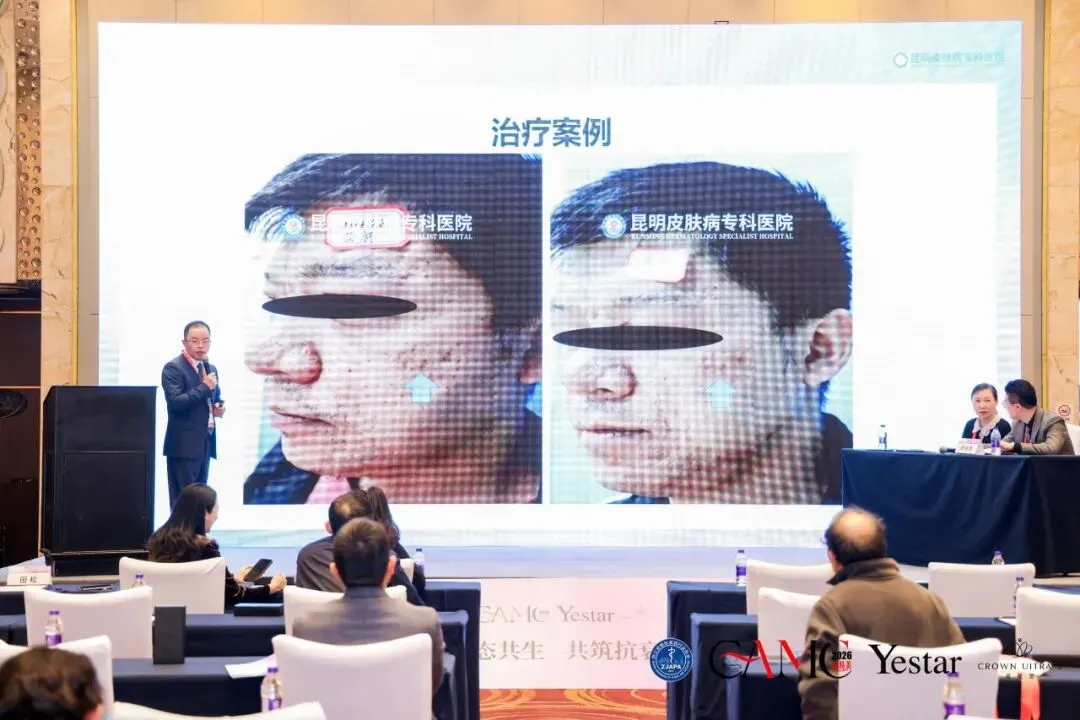 昆明皮肤病专科医院胎记名医工作站首席专家、上海九院周国瑜教授,疤痕名医工作站首席专家、原北京八大处蔡景龙教授,激光物理治疗中心业务主任田松副教授受邀出席,并分别在两大主题论坛登台作专题分享,凭借丰富的临床专业积淀与创新实力,在盛会中绽放学术高光。