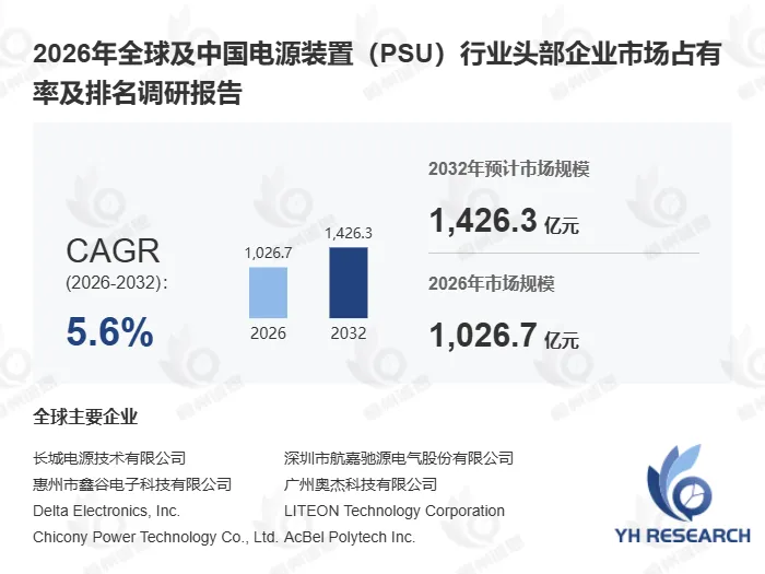 以下内容来自恒州诚思YHResearch出版的《2026年全球及中国电源装置(PSU)行业头部企业市场占有率及排名调研报告》,同时提供英文,日文,韩文等不同语种版本报告。