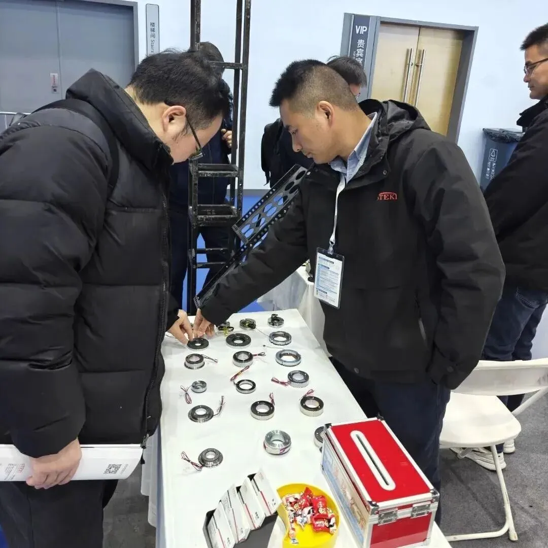 轻量化制动器:专为伺服电机设计,厚度仅传统产品的1/2,额定扭矩却提升20%,运行噪音直降10分贝!现场演示中,它精准控制机械臂的微小动作,引得观众纷纷拍照:“原来‘四两拨千斤’是真的!”