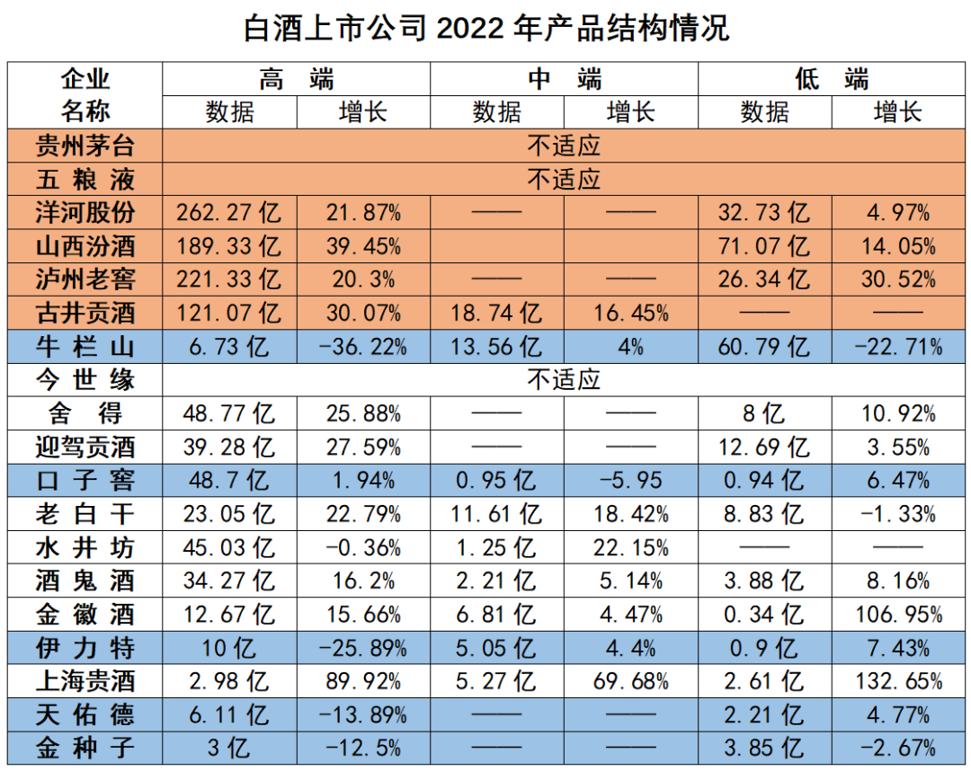 在酒业家统计的19家白酒上市公司中,能够明显发现,2022年增长和发展较好的企业均在中高端领域有所作为,实现了中高端驱动企业结构式发展的效果。