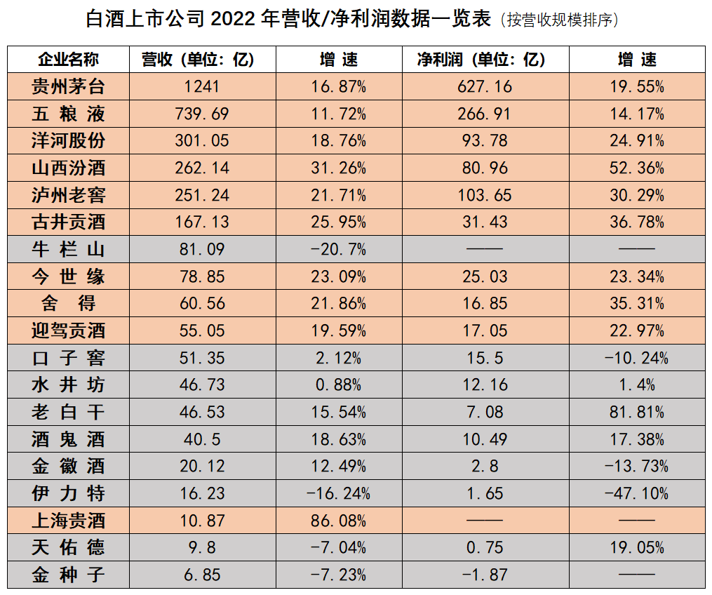 纵观茅台、五粮液、洋河、泸州老窖、汾酒、古井的2022年,几家企业集体上演“大象起舞”,均是在极大的基数上实现高速增长。