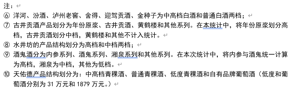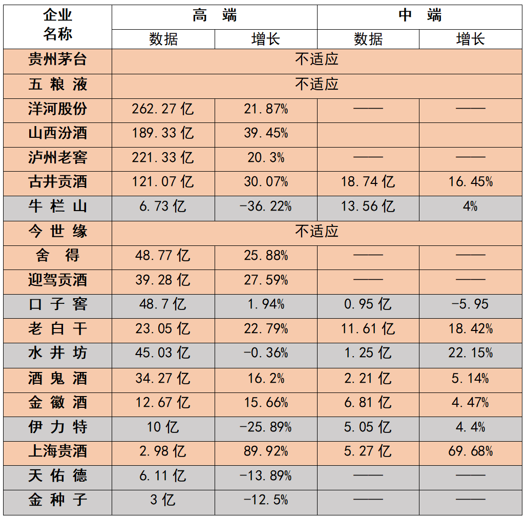 值得注意的是,在表中所体现的茅台、五粮液、今世缘等三家“不适应”本表的企业,也是符合中高端带动增长的逻辑。例如,在茅台酱香系列酒中,茅台1935的高端占位带动茅台酱香酒营收接近160亿,实现超过25%的增速。五粮液的结构中,五粮液浓香酒公司也在加快构建中高端产品为主的产品结构。