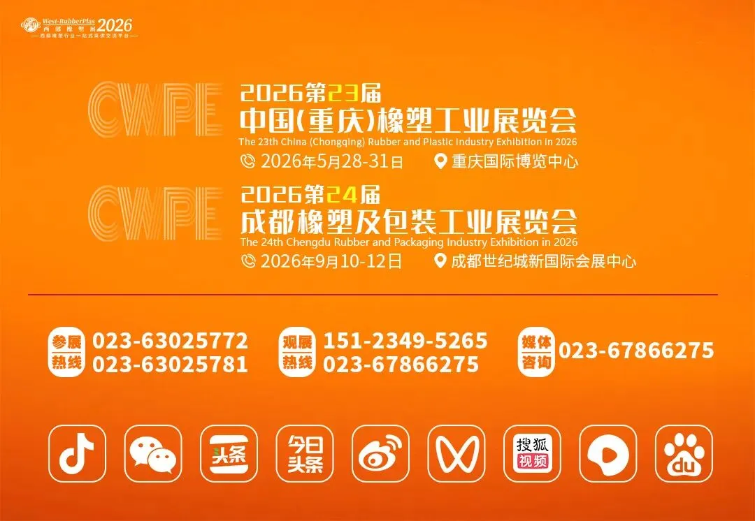 西部橡塑展是由拥有丰富橡塑行业展览经验的专业团队打造,展会定位立足西部,辐射全国,沟通全球。经过10余年的发展,现已成为国内专业的橡塑展会平台,也是西部地区橡塑行业新技术、新产品、新工艺重要展示交流平台。2026西部橡塑展设有两站:重庆站—2026第23届中国(重庆)橡塑工业展将于2026年5月28-31日在重庆国际博览中心举办,成都站—2026第24届成都橡塑及包装工业展将于2026年9月10-12日在成都世纪城新国际会展中心举办,双展联动,助橡塑企业拓展西部市场一臂之力!西部橡塑展10余年来共计办展20余次,累计服务参展商万余家,专业观众40万+。