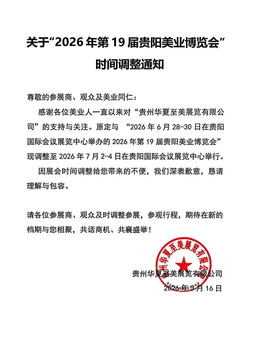 关于“2026年第19届贵阳美业博览会”时间调整通知