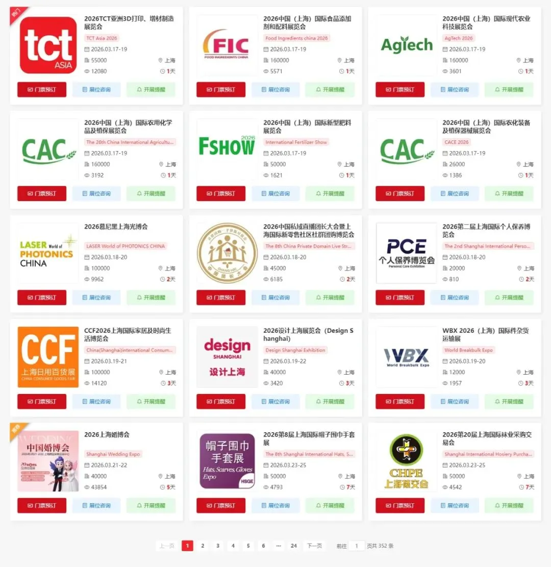 关注【展会全知道】微信公众号,在聊天对话框内回复【上海】查看上海近期展会信息、门票预约入口