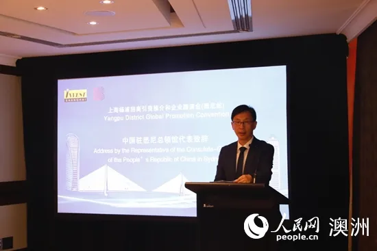 中国驻悉尼总领馆负责经商事务的参赞衔领事叶威在推介会上致辞(摄影 沈诗洋)