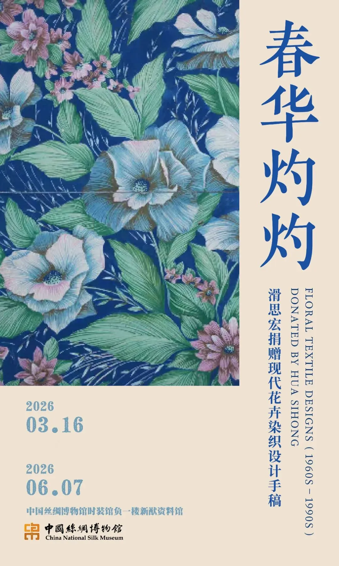 为致敬滑思宏先生的捐赠义举,并鼓励更多社会力量支持博物馆藏品建设,值此春和景明之际,中国丝绸博物馆于2026年3月16日,在新猷资料馆特别推出“春华灼灼——滑思宏捐赠现代花卉染织设计手稿展”。展览精选其捐赠的一批代表性手稿,作品涵盖富春纺、桑波缎、冠乐绉、装饰绸等真丝及人造丝染织品类的花样设计,均为滑思宏、韩巧英等杭州本土设计师的匠心之作。