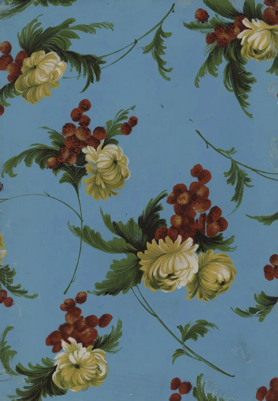 1.1966年蓝地散点菊花荔枝手绘稿