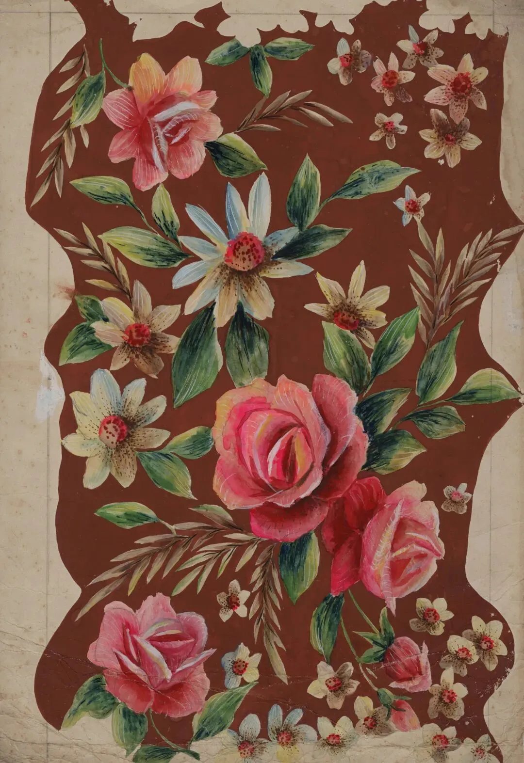 3.20世纪70--80年代不规则棕色地撇丝芙蓉花卉手绘稿