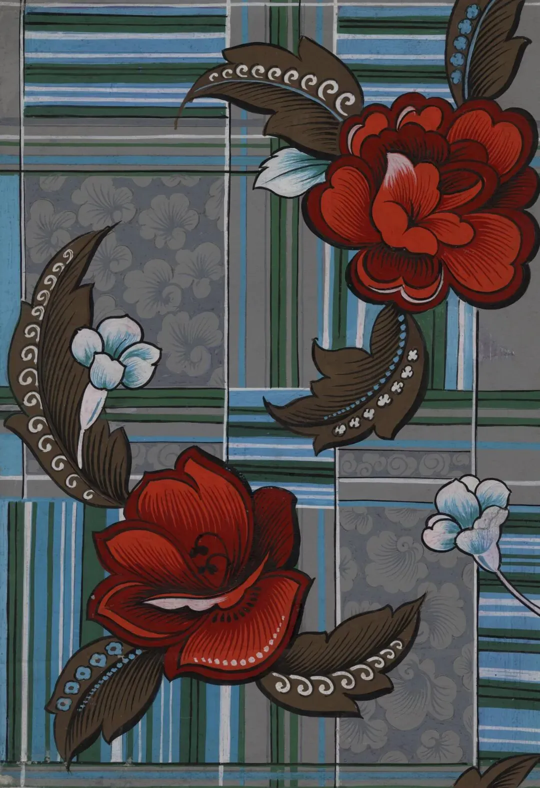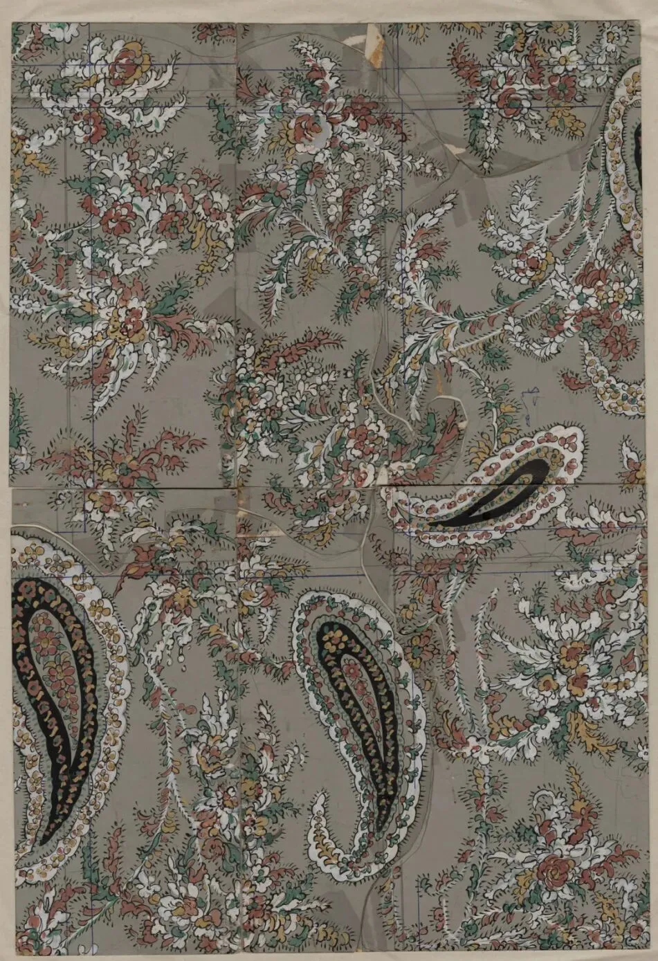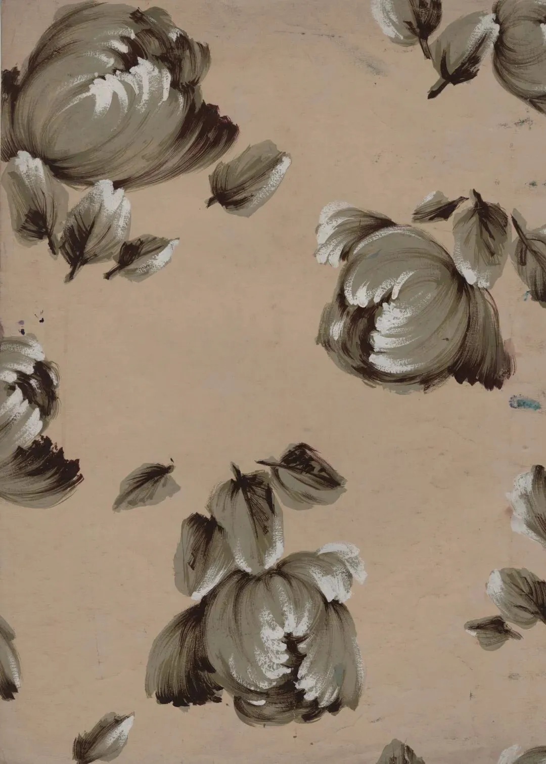 4.1980年灰地佩兹利(火腿纹)彩绘花卉手绘稿